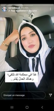 أثارت المدونة المغربية، سارة أبو جاد، جدلا واسعا عبر مواقع التواصل الاجتماعية، بعد مشاركتها تدوينة “غريبة”، على حسابها الشخصي على موقع التواصل الاجتماعي “إنستغرام”.ونشرت أبوجاد صورة سيلفي لها، أرفقتها بتدوينة عبر “ستوري” حسابها على نفس المنصة، جاء فيها: “غدا في محكمة لله نلتقي، وهناك العدل يقام”.