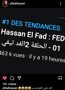 استطاعت أولى حلقات سلسلة “الفد تيفي” التي يقدمها نجم الكوميديا المغربية، حسن الفد ومواطنته الممثلة، مونية لمكيمل، خلال شهر رمضان، من شد انتباه المشاهد المغربي رغم المنافسة الكبيرة، في ظل كثرة الإنتاجات الفكاهية.