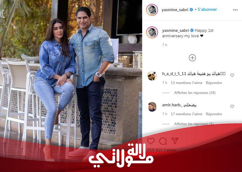 ونشرت ياسمين صورة تجمعها بزوجها أبو هشيمة عبر حسابها الشخصي بموقع”انستغرام”، وعلقت:”الذكرى الأولى السعيدة يا حبي”.