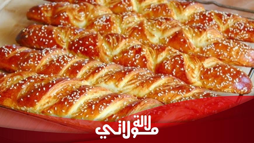 بياض بيضة+حليب بارد للعجن تقريبا كاسين ونصف+وبدة وزيت للتوريق+صفار بيضة مع حليب للدهن.