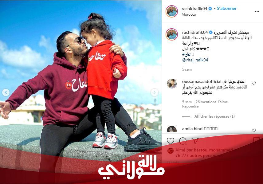 نشر الكوميدي المغربي رشيد رفيق صورا مميزة جمتعه بابنته الجميلة ريتاج التي خطفت الانظار، حيث ظهر معها وهما يرتديان ثيابا صممت لهما خصيصا ببصمة التفاح التي اشتهر بها رشيد، حيث اعتمد رسمة التفاحة لابنته بحكمها انثى فيما اعتمد هو كلمة تفاح .