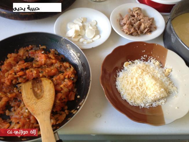 اي صلصة طماطم كتستعمليها في بيتزا+طون+فرماج+وو لي موجود خضر زيتون.