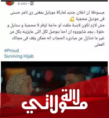 حقق الفنان المصري تامر حسني رواجاً كبيراً في مصر، من خلال الخطوة التي قام بها في الإعلان الدعائي الجديد لصالح إحدى شركات المحمول المُتعاقد معها، وهي ظهور فتاة محجبة معه في الإعلان.
