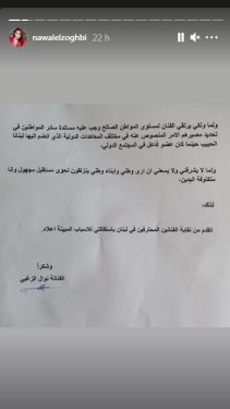 ونشرت نوال الزغبي صورة لاستقالتها، التي ذكرت من خلالها الأسباب الذي دفعتها للاستقالة قائلة:”نظرا للدور السلبي الذي يلعبه معظم الاحزاب والشخصيات والتيارات السياسية في لبنان وعدم اكتراثهم للانزلاق الاقتصادي والمالي والامني الحاصل، متمسكين بمصالح شخصية ضيقة لا ترتقي الى مستوى المصلحة العامة”.