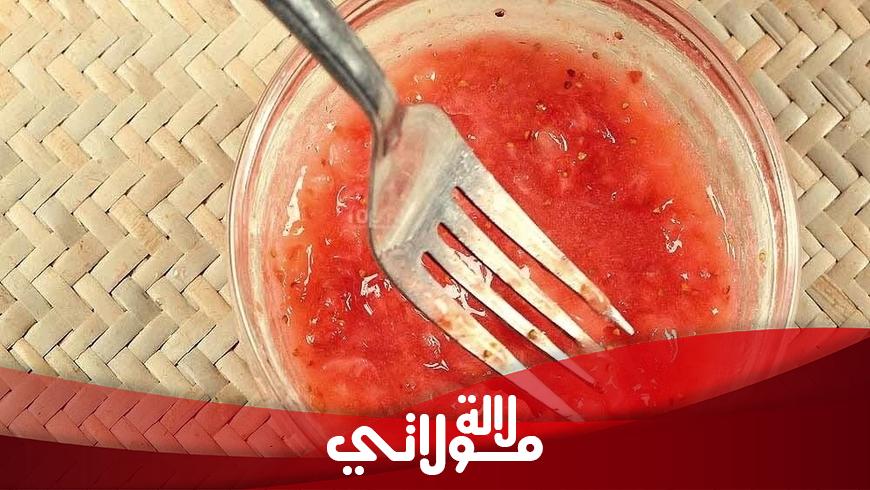 المكونات :حبتين من الفراولة المطحونة+ملعقة من العسل+ملعقة من بيكاربونات الصودا
