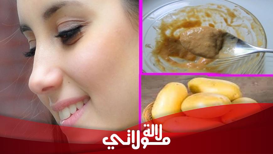 يمكنك سيدتي أن تخلطي ملعقة من عجينة البطاطا الخضراء إضافة إلى ملعقة من زيت اللوز وطبقي الخليط على بشرتك واتركيه حوالي 30 دقيقة بعدها اشطفي مع تكرار الوصفة كل يوم لمدة 10 أيام ستلاحظين أن الكلف بدأ يختفي.