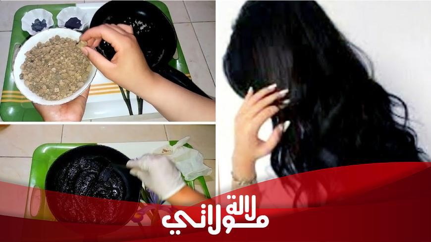 والتي كانت تستعمل في القديم من قبل الجدات حيث تعطي للشعر لونا أسودا داكنا وتخفي الشيب نهائيا، ويكفي أن تقومي بشرائها وتحميصها إما في الفرن أو قليها في الزيت إلى أن تصبح سوداء اللون بعدها قومي بطحنها جيدا إلى أن تتحول إلى مسحوق واخلطيها مع كمية من الماء الدافئ وطبقيها على شعرك كما تطبقين الحناء بسهولة، واتركيها حوالي ساعتين ثم اشطفي، يجب عليك غسل شعرك جيدا فهي تبقى عالقة في الشعر وتحتاج للكثير من الماء حتى تزول بقاياها وسترين النتيجة في الحين.
