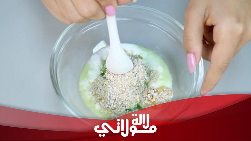 المكونات : ملعقتين من دقيق الذرة الاصفر+ ملعقتين من الخيار المطحون بقشوره