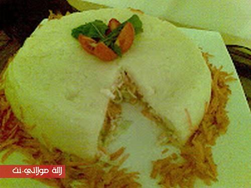أول شي أخلطي البطاطس المهروسة في فرامة البصل مع الجبن السايل والما يونيز والملح