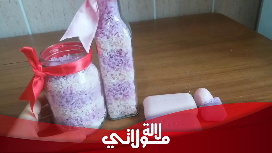 يمكنك سيدتي أن تقومي بجمع قطع الصابون المعطر التي عادة ما تكون عبارة عن بقايا غير مستخدمة والتي يتم التخلص منها في الغالب، ثم قومي ببشرها إلى أن تصبح قطعا صغيرة وضعيها في قنينات زجاجية وصبي عليها قطرات من زيوت عطرية حسب ذوقك ثم اغليقها وضعي ثقوبا في الاغطية ثم ضعيها في خزان المياه وكلما تم استعماله والضغط عليه سترين أن الحيلة ستنفع إذ أن المياه ستخرج معطرة إضافة رغوة كثيفة ستقوم بعملية التنظيف كما ستبقى رائحة الحمام زكية .