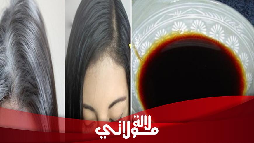 يمكنك سيدتي أن تقومي بخلط كمية من القطران الرقيق مع كمية من التمر الأسود واخلطي جيدا إلى أن تحصلي على خليط رخو ثم طبقيه على شعرك مع التركز على الأماكن التي يظهر فيها الشيب بعدها اتركي الخلطة مدة ساعة واشطفي يمكنك تكرار الوصفة كل يوم لمدة 5 أيام سترين أن الشيب اختفى.