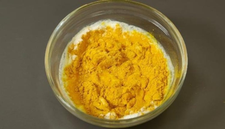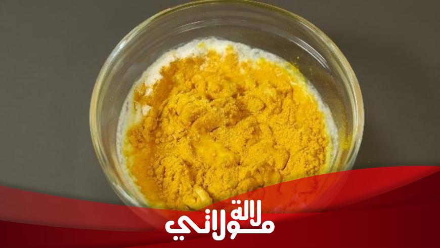 خلطة مطحون الحمص والكركم:امزجي كميّة مناسبة من مطحون الحمص، وكميّة مساوية لها من مسحوق الكركم، ثم ّأضيفي إليها القليل من الماء لتحصلي على مزيج كثيف، ثم ادهني الخليط الناتج على وجهكِ واتركيه ليجفّ بعد ذلك افركيه برفق ثم أزيليه بواسطة قطعة مبللة من القماش وأخيراً اغسلي بشرتك بالماء العادي.