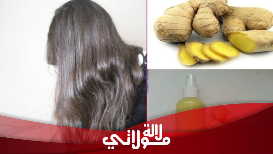 المكونات :عصير زنجبيل طري مبشور+ملعقة زيت جوز الهند+ملعقة جيل الويفيرا