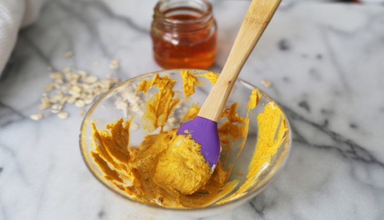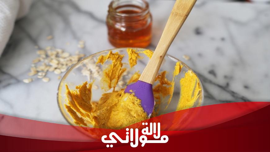 المكونات : ملعقة من الكركم البلدي المطحون + ملعقة من الغاسول الأخضر + ملعقة من الياغورت الطبيعي