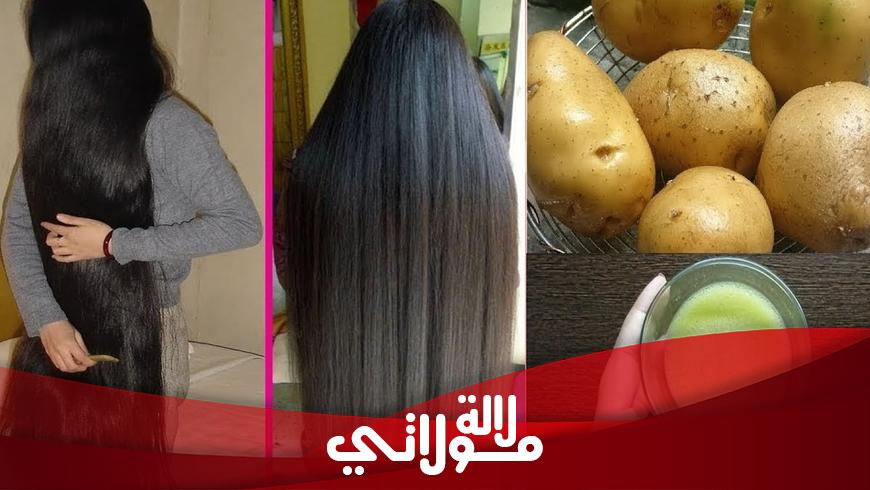 المكونات : عصير حبيتين من البطاطس أو حسب نوعية الشعر + ملعقتين من زيت جوز الهند + ملعقتين من زيت الحبة السوداء+ ملعقتين من زيت السمسم + ملعقتين من زيت اللوز + ملعقتين من زيت الجزر