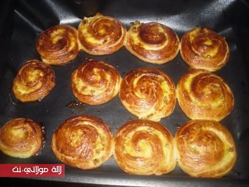 تدهن كل قطعة بالحليب بصفار بيض و تدخل الفرن وو تقدم بصحة و عافية