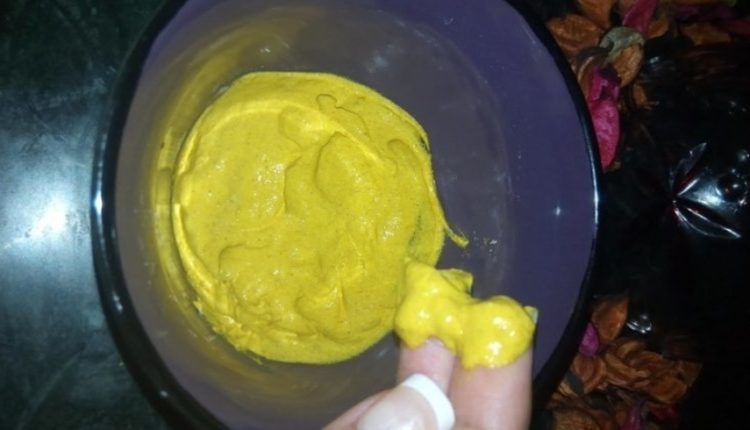 المكونات :ملعقتين من الكركم المطحون+ملعقتين من الفازلين+ملعقة من ماء الورد