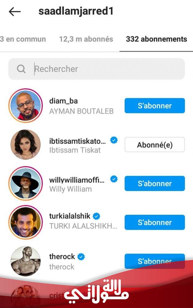 عجت مواقع التواصل الاجتماعي بخبر متابعة كل من الفنان المغربي سعد المجرد والفنانة إبتسام تسكت لبعضهما البعض على موقع تبادل الصور والفيديوهات بعد خصام طويل.