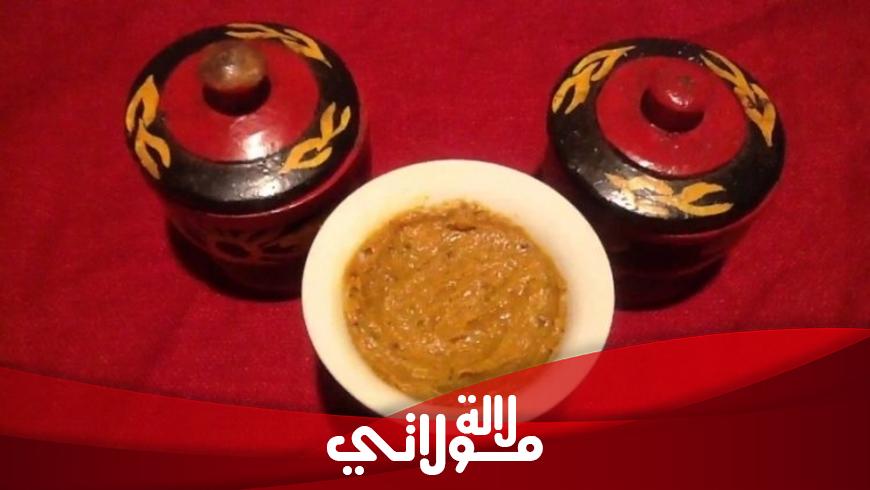 المكونات : ملعقة كبيرة من الخزامى المطحونة + ملعقة من الزعتر المطحون + ملعقة من الغاسول الأخضر + ملعقة من بودرة الزاز + نصف ملعقة من بودرة الودعة + ملعقة من النيلة البيضاء + حبات من الخردل المطحون + عصير الليمون حسب الكمية.