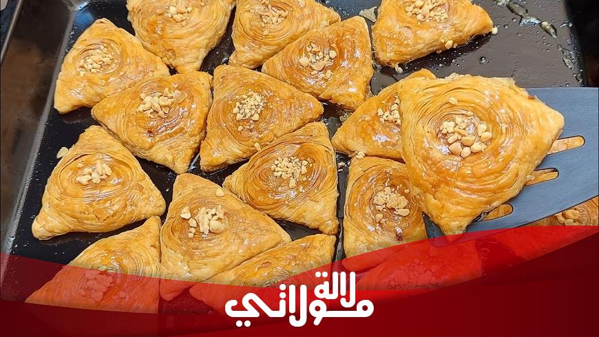 مكونات العجين 400غ دقيق أبيض نصف كأس عنبة زيت ربع كأس عنبة ظاء زهر نصف كأس عنبة كريمة سائلة ممكن تعويضها بعلبة ياغورت طبيعي او بيرلي ملعقة كبيرة سكر ملعقة صغيرة خميرة الحلويات قرصة ملح كأس عنبة قل ربع حليب بارد لجمع العجين الحشوة للوز محمر الكمية حسب الرغبة جوز الهند عنب يابس مربى المشمش الكمية المسعملة هنا موضحة في الفيديو للتوريق نشا للدهن زبدة دائبة مع زيت.