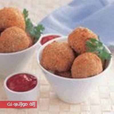 5. تغمس الكرات في قليل من الدقيق ثم البيض ثم البقسماط وتقلى في زيت غزير.