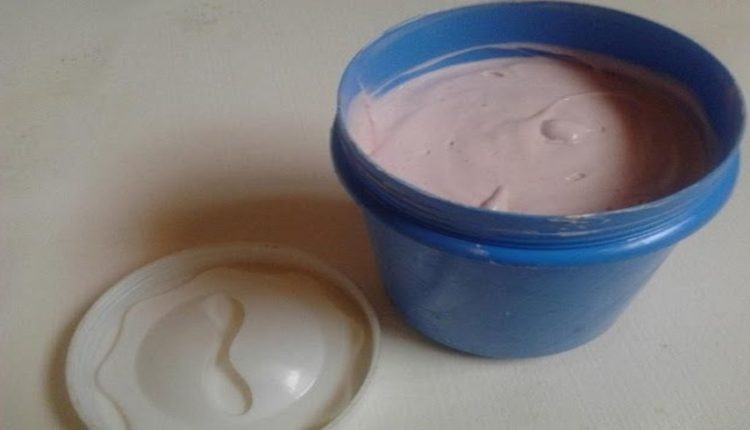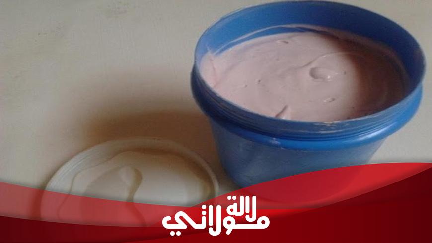 المكونات :علبة ياغورت طبيعي+كمية من الغاسول الأبيض+ملعقتين من اللوز المطحون+كمية من صابون دوف مبشور+ملعقة من ماء الورد
