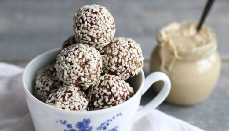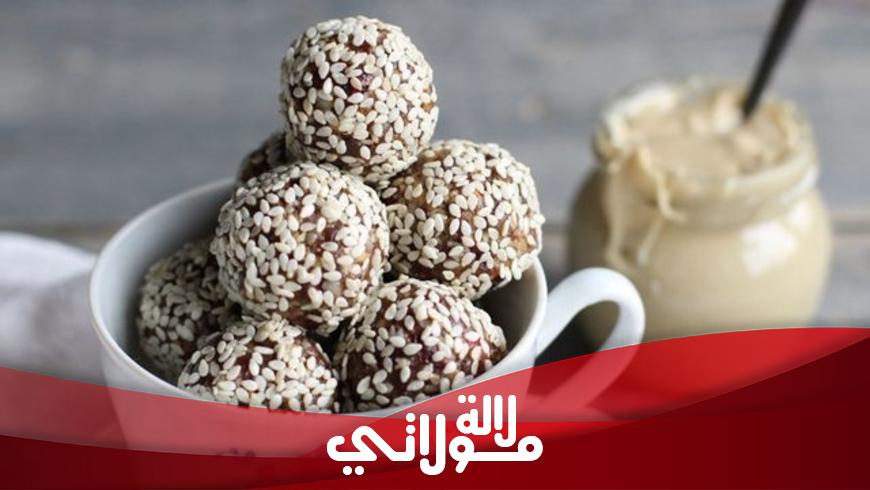 المكونات : كمية من الصوجا المطحونة + كمية من السمسم المحمص والمطحون + كمية من الجوز + كمية من التين المجفف المطحون + نصف كوب من الزبيب المطحون+ كمية من العسل الطبيعي أو الشكولاطة السائلة.