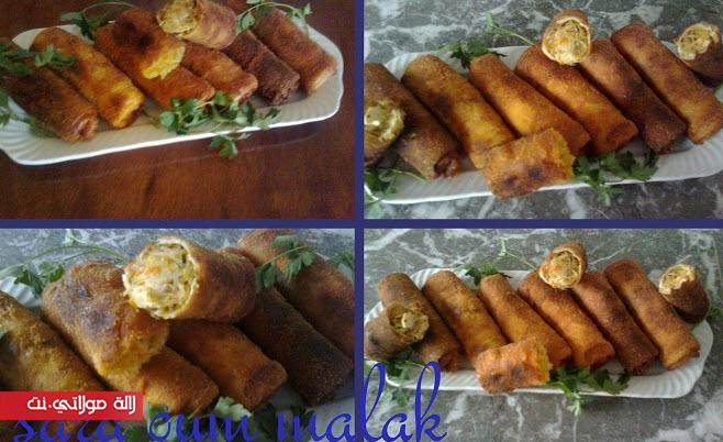 بالنسبة للحشو : تنشحر قطع الدجاج مع كنور الدجاج، ملح ، ابزار، سكنجبير، توم ، معدنوس تم نزيد الجزر مبشور و نخلط مزيان