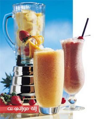 يقطع التفاح إلى مكعبات متوسطة وينزع منه البذر من الداخل ويوضع في آلة الخفق ذات الشفرات الحديدية نضيف إليه لب الأناناس المقطع إلى مكعبات والموز المقطع إلى دوائر نخفق الفاكهة في الآلة ثم نقدمها مع الثلج المطحون