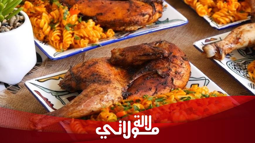 وصفة الدجاج فالفرن بأروع تتبيلة مع طبق المعكرونة بصلصة الطماطم طبق ولا أروع