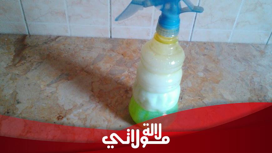 الطريقة:يخلط الكل في قنينة سبراي و ترش الأماكن العفنة تترك لمدة نصف ساعة و تشطف أو تمسح سوف تذهلين بنتيجته الرائعة التي ستحصلين عليها دون دعك أو فرك، سترين النظافة اللامعة التي تبحثين عنها دائما.