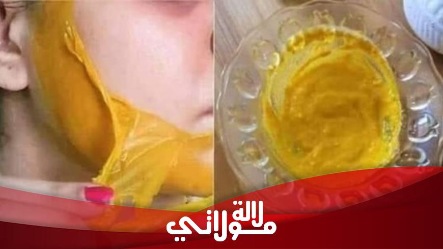 المكونات : 70غرام من دقيق الحمص المطحون+ 3 ملاعق من مسحوق الكركم+ ملعقة من زيت اللوز