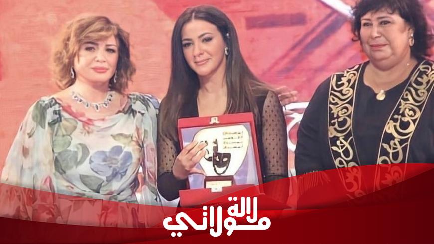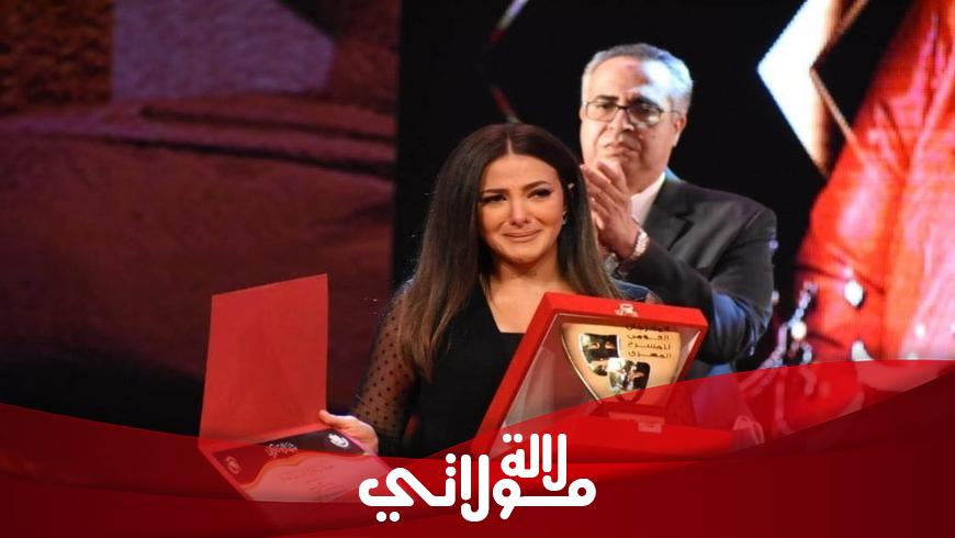 وصعدت دنيا سمير غانم على المسرح في البداية، لاستلام الدرع الخاص بتكريم والدتها الفنانة الراحلة دلال عبدالعزيز وبدأت بالبكاء، وخلال تواجدها على المسرح عُرض تقرير عن والدها الفنان الراحل سمير غانم، لتكريمه هو الأخر عن مجمل أدواره، فزاد الأمر من تأثرها ولم تستطع كبح دموعها.