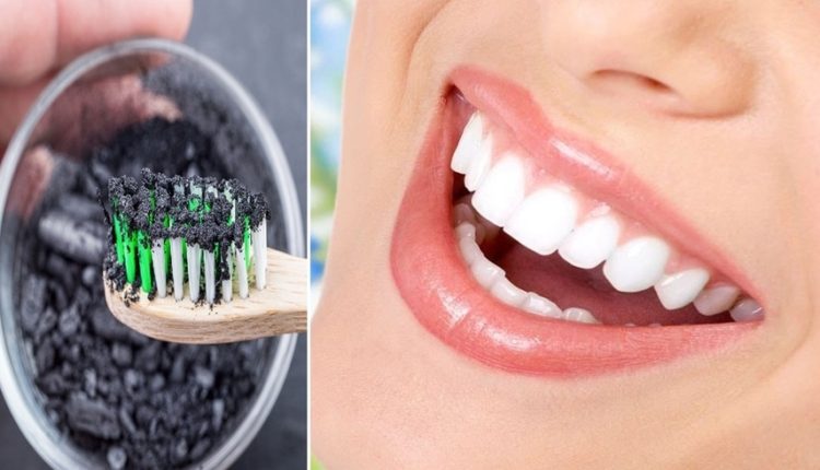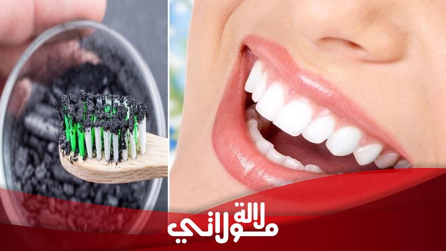 المكونات : ملعقة من بيكاربونات الصودا + ملعقة من عصير الليمون + ملعقة من بودرة الفحم
