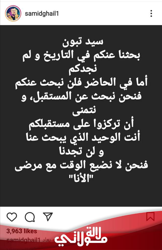 وقال غيلان في تدوينة نشرها عبر حسابه الرسمي على موقع تبادل الصور والفيديوهات أنستغرام “سید تبون بحثنا عنكم في التاريخ و لم نجدكم أما في الحاضر فلن نبحث عنكم فنحن نبحث عن المستقبل”.