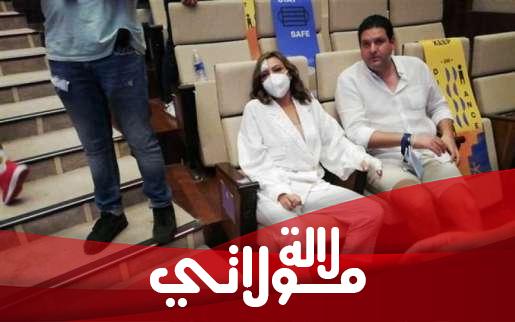 وظهرت بشرى خلال الندوة المقامة وهي تضع كمادات لإصابات بوجهها وذراعها جراء الحادث، وكان برفقتها زوجها ، وارتدت ملابس بيضاء بسيطة.