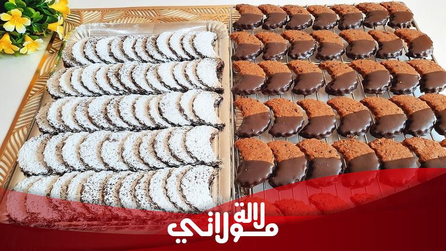 مقادير العجين: 02 كؤوس جوز الهند (كوك) محمر 125 غرام زبدة 01 كاس زيت 01 كاس سكر 01 حبة بيض 02 ملاعق كبيرة كاكاو حلو 02 ملاعق كبيرة فيرميسيل 01 كيس خميرة الحلويات 01 كيس سكر فاني قبصة ملح 450 غرام دقيق للتزيين: شكلاط اسود سكر صقيل (سكر كلاصي).