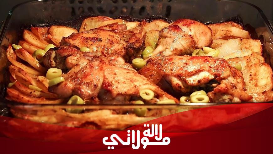 مطبخ حليمة الفيلالي يقدم لكم وصفة او اكلة سريعة وسهلة التحضير لذيذة جدا المكونات/ قطع دجاج حسب المتوفر بصل بطاطس +ثوم +خردل (موطارد ) كيتشوب ممكن تعويضه بملعقة صغيرة طماطم مصبرة +القليل من العسل اعشاب منسمة حسب المتوفر توابل القليل من الهريسة زيت ملح +ماء.