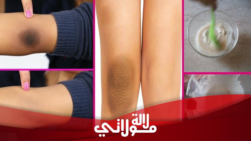 يمكنك سيدتي أن تخلطي ملعقتين من الكركم المطحون مخلوطة بفازلين طبيعي نقي، حتى تصبح كالمعجون وتدهن بها المناطق الداكنة كالركب والأكواع وتترك عليها لمدة لا تقل عن 30 دقيقة يومياً.