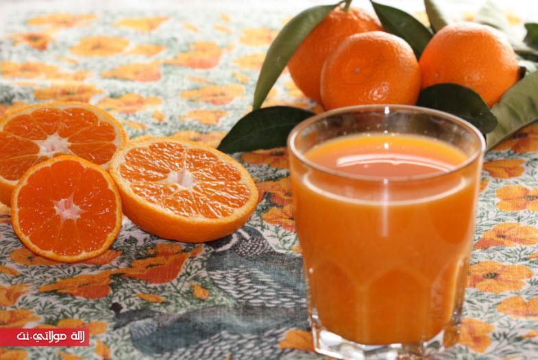 4. يطحن المندرين مع الماء ويصفى ونضيف له نصف لتر ماء المتبقي والسكر حسب الذوق
