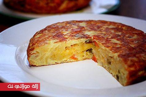 في مقلاة تفرغ ملعقتين من زيت القلي وهو لا يزال ساخنا وتسخن المقلاة ؛ تضاف البطاطس بعد إخراجها من الزيت إلى خليط البيض والبصل ثم يفرغ الكل في المقلاة التي سبق تسخينها.