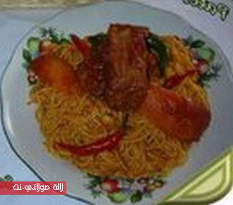 8 قدمي المعكرونة في طبق وزينيه بقطع الحم و الفلفل ورشي فوقهم الجبن المبشور