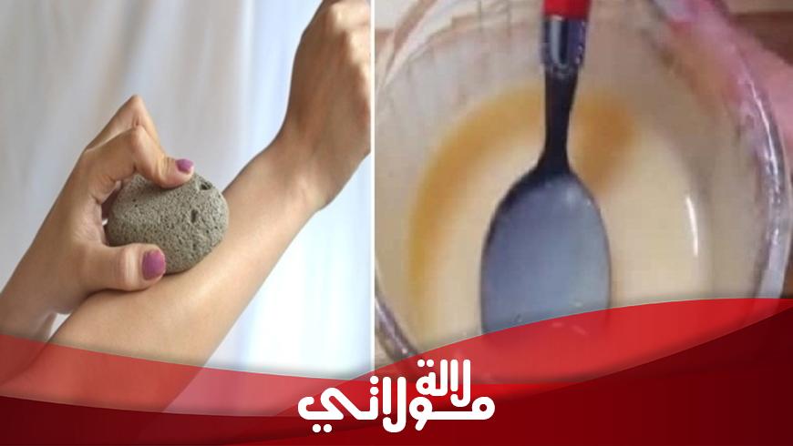 طريقة التحضير :اخلطي هذه المكونات جيدا إلى أن تذوب على نار هادئة ثم أزيليها واتركيها إلى أن تصبح حرارتها متوسطة تستطيعين تحملها على جسمك، ثم افرديها واتركيها إلى أن تجف وبعدها أزيليها وسترين انك ستتخلصين من شعر الجسم كله لمدة عام كامل.