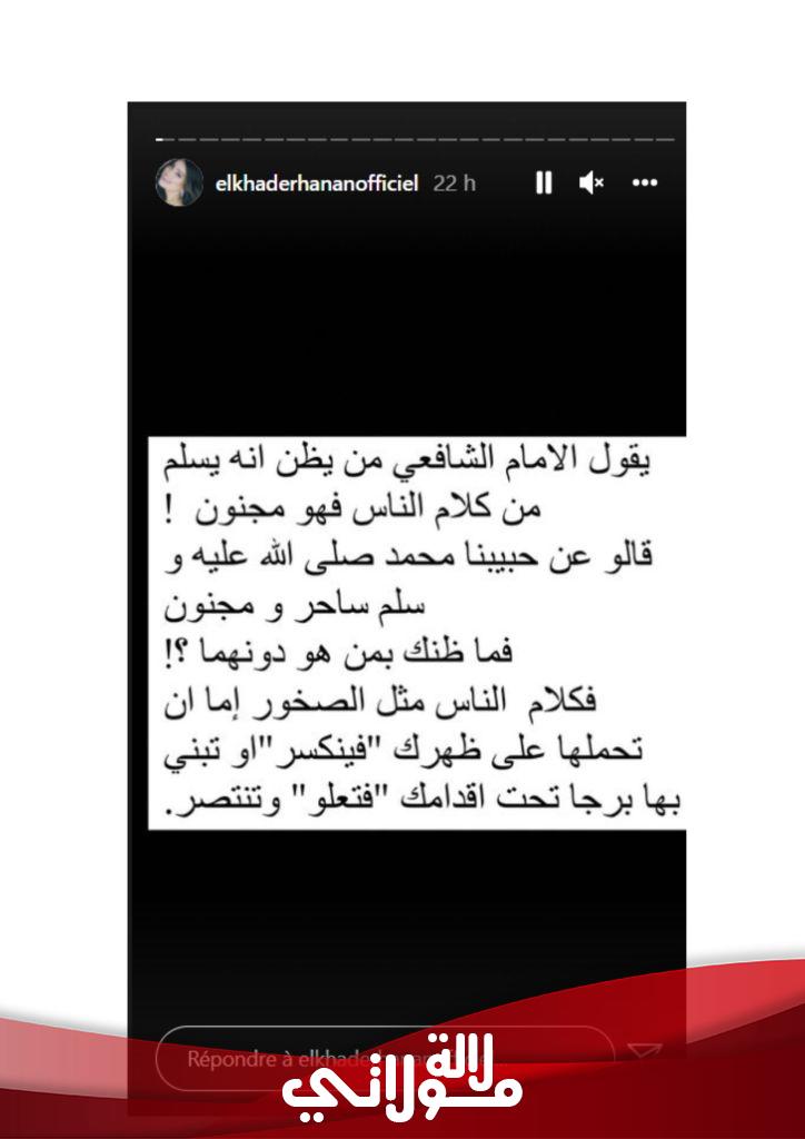 خرجت الفنانة المغربية المعتزلة حنان الخضر عن صمتها عقب الهجوم والجدل الكبير الذي أثاره متابعو حسابها عبر تطبيق تبادل الصور والفيديوهات أنستغرام، بسبب أحدث إطلالة لها.