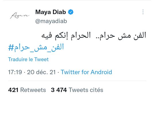 ونشرت مايا تغريدة عبر حسابها الشخصي بموقع”تويتر” تهاجم من خلالها أدهم وكتبت:”الفن مش حرام.. الحرام إنكم فيه”.