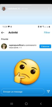 قام نبيل عبيد الزوج السابق للفنانة المغربية، نجاة رجوي، بنشر “سكرين شوت” عبر حسابه الشخصي على موقع التواصل الاجتماعي إنستغرام، يوضح قيام رجوي بمتابعته عبر نفس المنصة، رغم الخلاف الحاصل بينهما.