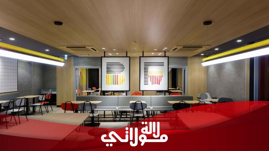 يتميز المطعم الجديد الذي تم افتتاحه بمدينة أكادير بتصميم Geometry وهو عبارة عن زخرفة تستند إلى حروف مطبعية أصلية تتقاطع مع منتجات العلامة لتشكل لوحات معاصرة تمتع النظر. كما يعزز نسيج ودقة نجارة الطاولات والمقاعد الصفات الجوهرية لهذا التصميم. كل ذلك يمنح للمطعم فضاءات مختلفة توفر الراحة والهدوء اللازمين لعيش تجربة جذابة.