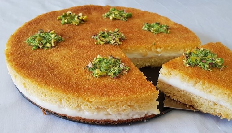 تحضير القشطة:وضع الحليب، والقشطة، وماء الزهر، ودقيق الذرة في وعاء، ووضعه على النار حتى يسخن ثم إضافة حبة البيض إلى الخليط، مع التحريك المستمر و رفع القدر عن النار، وتركه جانبا و سكب الخليط الموجود في القدر فوق الصينية، مع مده بالتساوي ثم يتم توزيع عجينة البسبوسة المتبقية على وجه القشطة بهدوء ثم إدخال الصينية إلى الفرن على درجة حرارة منخفضة حتى تنضج ثم إخراج الصينية من الفرن، وسكب القطر عليها، وتقديمها ساخنة.