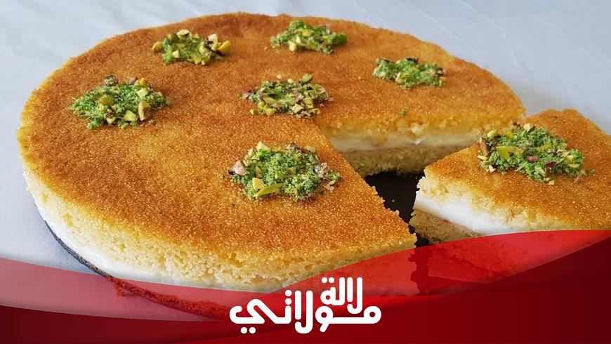 طريقة التحضير :وضع السميد، والبيض، وجوز الهند، والسكر، والزيت، والباكينغ باودر، وحليب البودرة، والفانيليا، والخل الأبيض في وعاء و دعك العجينة باليد بشكل جيد، ومد نصف الكمية منها في صينية مدهونة بالقليل من الطحين و إدخال الصينية في الجهة السفلية من الفرن حتى تنضج.