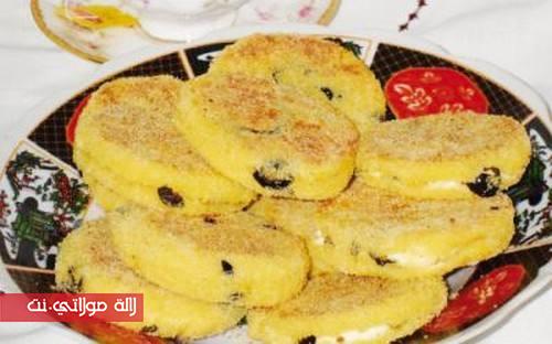 من بعد نخلطو الحشوة فشى آنية ونأخذ أول كرة تكرص ونديرو فى الوسط ديالها شوية من الحشوة ونجمعوالجوانب ونكرصوها مع رشها بالفينو ونطيبوها فى المقلا الثقيلة فوق البوطة.